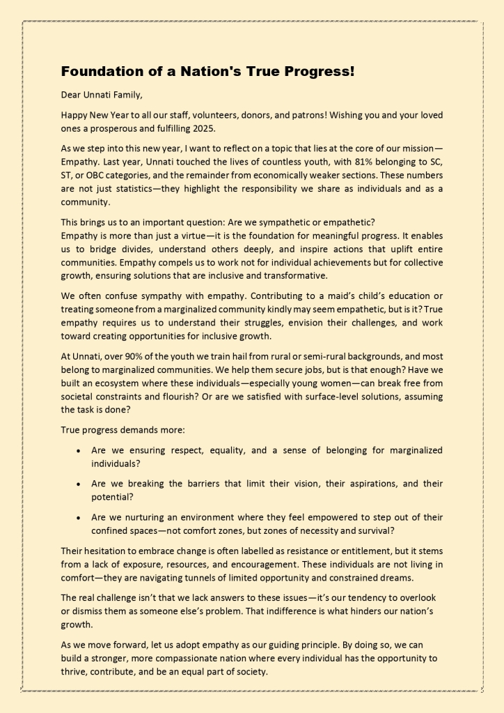 UNNATI’S QUARTERLY NEWSLETTER FOR OCT – DEC 2024Jayan VargheseJan 251 min readOur Newsletter for the period of October to December 2024, is now here! * * *