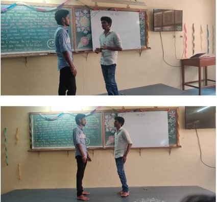 12th batch students of Unnati Tiruvannamalai Centre, engaged in an activity on “Introducing Others In English“.